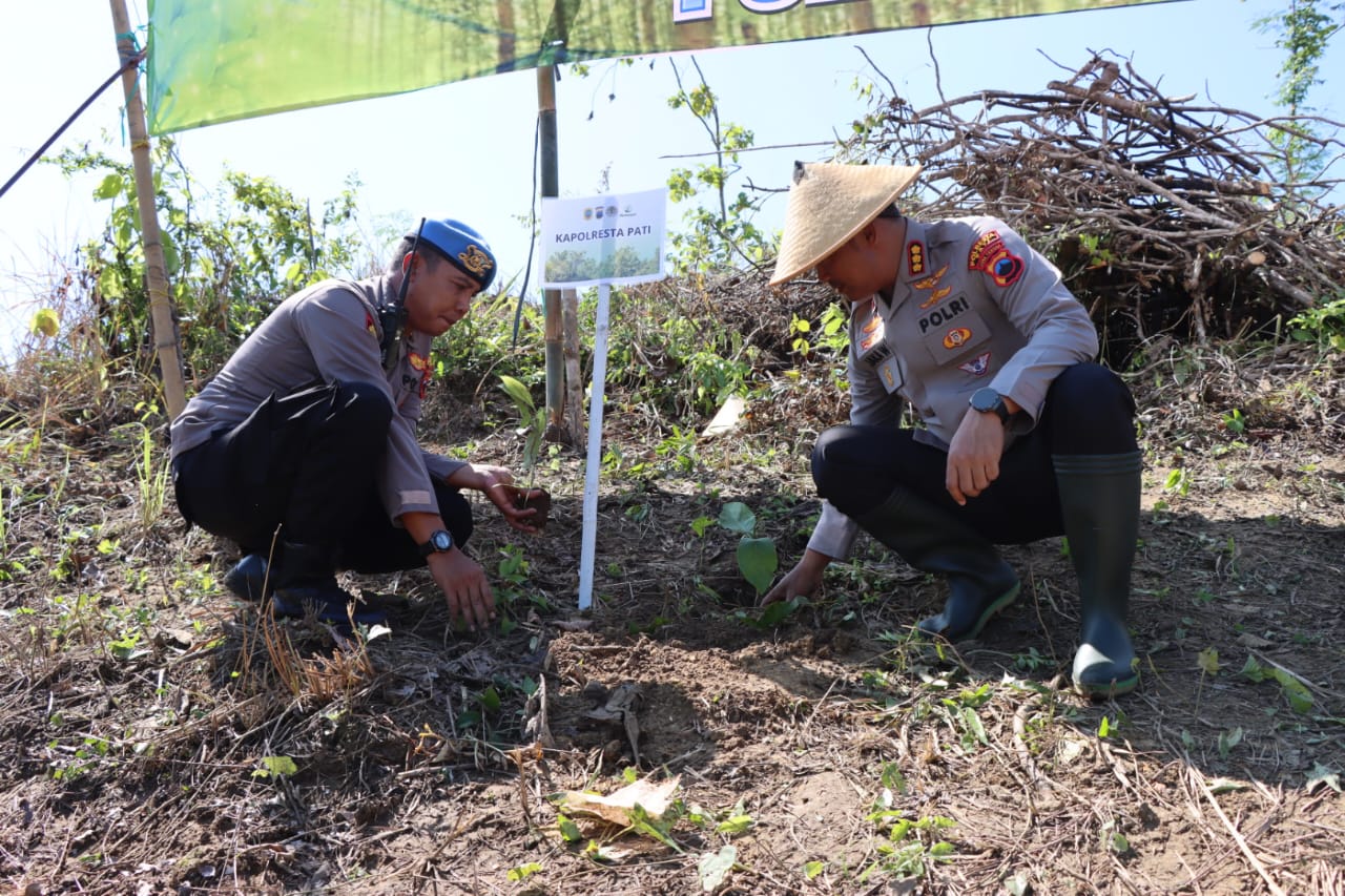 Kapolresta Pati Kombes Pol Jaka Wahyudi menyampaikan bahwa kegiatan penanaman pohon ini menjadi bagian dari komitmen Polri dalam menjaga kelestarian lingkungan. Menurutnya, penghijauan bukan sekadar kegiatan seremonial, melainkan langkah strategis untuk memulihkan fungsi alam sebagai penyangga kehidupan masyarakat. “Menjaga lingkungan berarti menjaga masa depan generasi kita,” ujarnya.